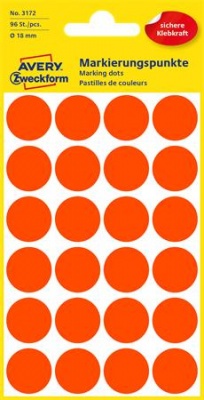 KezdőlapIrodaszerekIrodai papíráruEtikettekEtikett, 18 mm, kör, AVERY ZWECKFORM, neon piros, 96 etikett/csomag