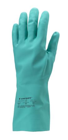 Védőkesztyű, nitril, vegyszerálló, érdesített, kesztyű, 10/XL méret, zöld