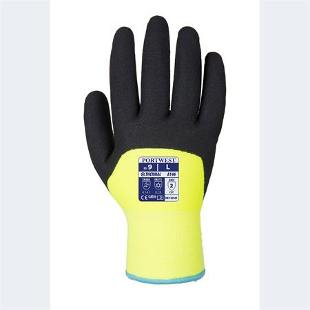 Védőkesztyű, téli, dupla bélés, nitril, mártott, S méret, sárga-fekete